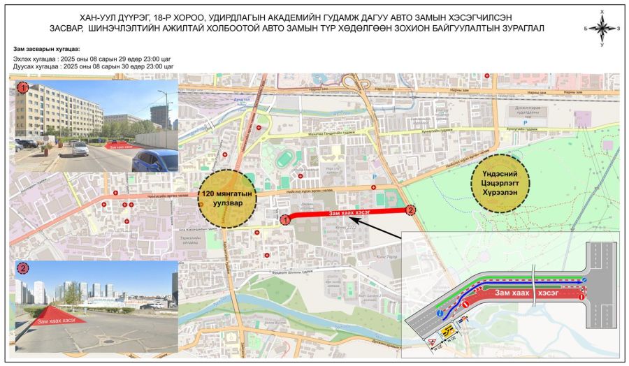 (ウランバートル市、2025年8月28日、国営モンツァメ通信社)行政管理アカデミー通りの改修工事に伴い、「大モンゴル通り」からオルギル・スーパー交差点までの区間を一時的に通行止めとする。市当局によると、アスファルト舗装の敷設や道路標示の設置を行うためで、通行止めは8月29日23時から9月1日午前5時まで続く予定である。