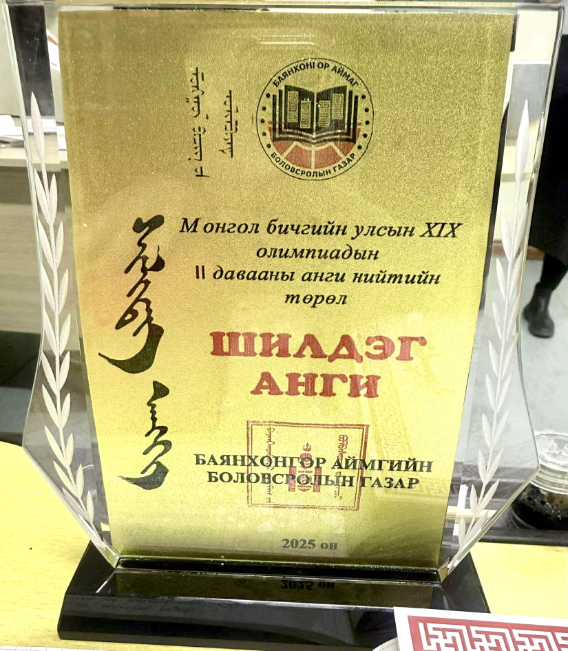Үүгээр юуг хэлэх гээд байна гэхээр багшийн шахалтаар ч юм уу, ямар нэг албадлагаар биш сурагчдын хүсэлтээр уралдаан тэмцээнд бэлтгэх нөхцөлийг бүрдүүлж байгаа юм. Ингээд сурагчид өөрсдөө хүсэл тэмүүлэлтэй болоод эхлэхээр нь чиглүүлээд явчихад хүндрэл бага гардаг. Сурсан мэдсэн зүйлээрээ уралдаан тэмцээнд орж, хэр хэмжээнд яваагаа мэдэх нь илүү итгэл үнэмшил, урам зориг өгдөг. Багш дан ганцаар зүтгэхээс илүү сурагчидтайгаа зорилго тавих, түүндээ хамтран зүтгэх л арга зүйн бас нэг онцлог маань байж болох юм. Тэгээд бид хамтдаа хичээгээд аймагтаа шалгарч, “Үндэсний бичигтэн анги” өргөмжлөл хүртсэн. Хүүхдүүд маань түүнээсээ маш их урамшиж одоо үндэсний бичгээ шамдан суралцаж байгааг харах, мэдрэх сайхан санагддаг.