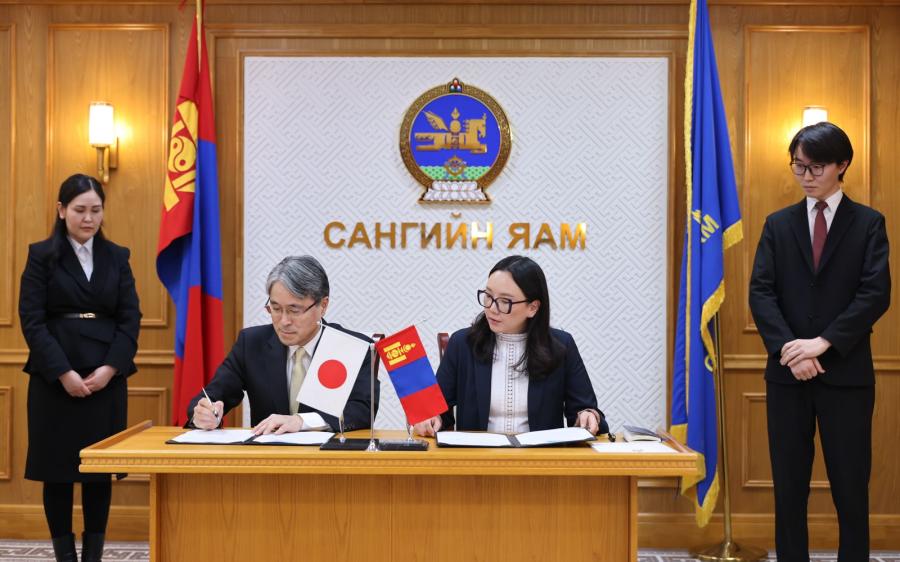 (ウランバートル市、2026年1月16日、国営モンツァメ通信社)日本国政府援助で総額5億円を限度とするモンゴル国に対する無償資金協力「経済社会開発計画(電力系統信頼度向上機材)」に関する交換公文の署名が14日に財務省で行われた。