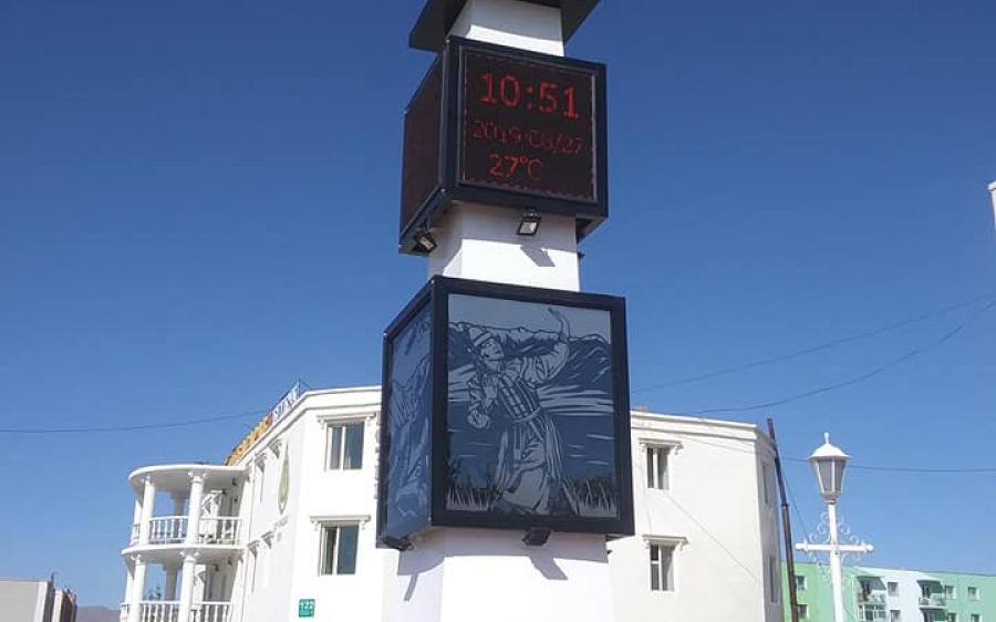 Ховд /МОНЦАМЭ/. Ховд аймгийн төвд баруун бүсийн цаг бүхий соёмбот цамхаг бүтээн босголоо.