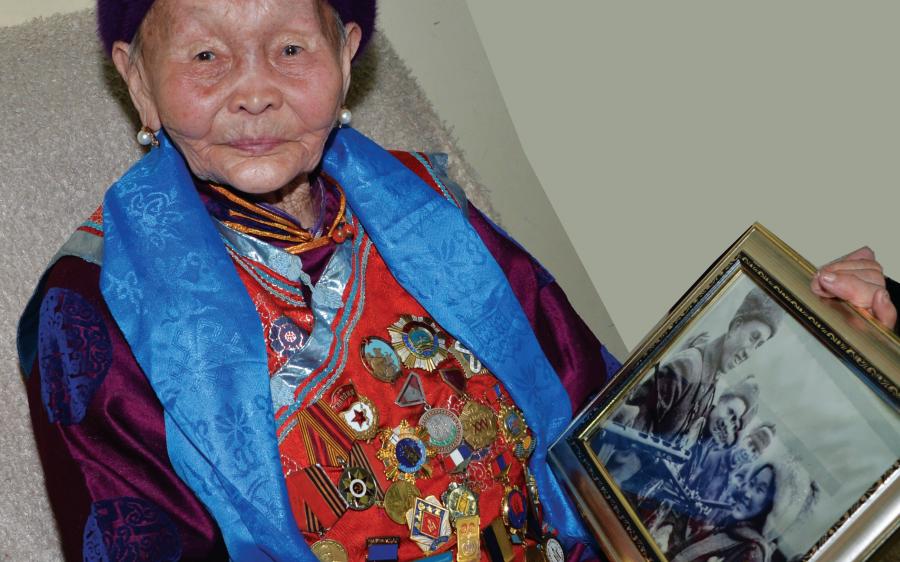 -Тийм, үнэмлэх дээрээ аварга малчин гэж байдаг юм билээ. Би Монголын анхны сайн малчин. 18-хан настай одон зүүсэн. Анхны сайн малчид 300 хүн хуралдахад хамгийн бага нь би байсан. Сайн малчны 2-р хуралд очиход бас л хамгийн бага нь байв. Харин гуравдугаар хуралд очиход дандаа ахмадууд байсан. Тэгэхэд энэ дагаж яваа хүүгийн дараагийн хүүхэд гэдсэнд байсан юм. Гангийн даваанд тэрэг суугаад найман сартай хүүхдээ хөдөө булчихсан юм даа. Ингэж хөдөө ч төрж явлаа.