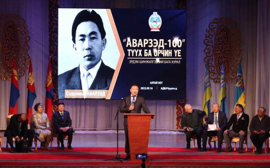 Говь-Алтай /МОНЦАМЭ/. Төр, нийгмийн нэрт зүтгэлтэн, БНМАУ-ын Гадаад явдлын яамны сайд агсан С.Аварзэдийн 100 жилийн ойд зориулсан "Аварзэд-100" түүх ба орчин үе эрдэм шинжилгээний бага хурал Алтай хотноо боллоо.