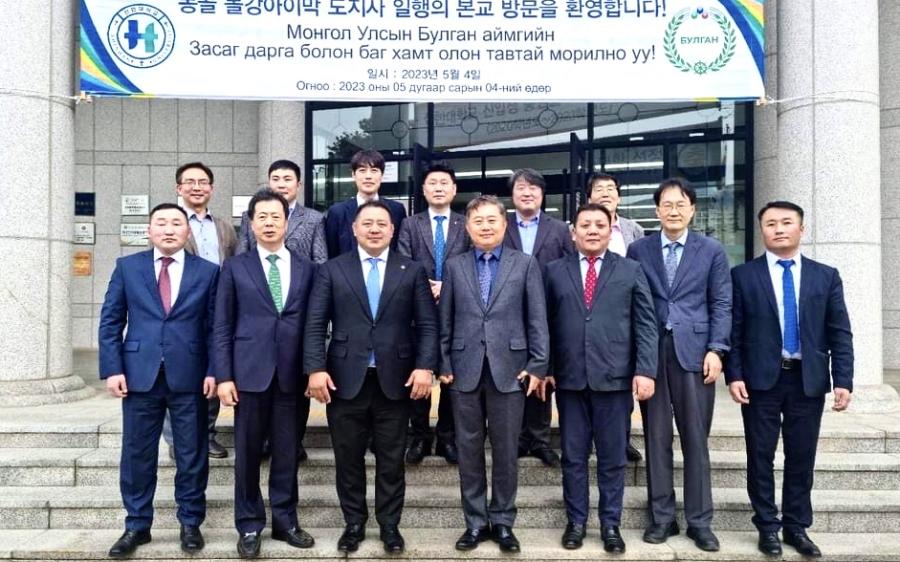 Булган /МОНЦАМЭ/. Булган аймгийн Засаг дарга Б.Ариун-Эрдэнэ, Бүгд Найрамдах Солонгос Улсын Шинхан их сургуулийн ерөнхий захирал Жонг Жин Кён нар хамтын ажиллагааны гэрээнд өнгөрсөн 7 хоногт БНСУ-ын Кёнги аймагт гарын үсэг зурсан байна.