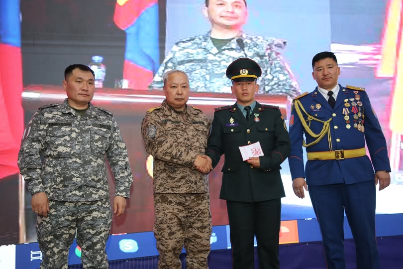 Өлгий, 2025 оны дөрөвдүгээр сарын 16 /МОНЦАМЭ/. Баян-Өлгий аймагт одоогоос дөрвөн жилийн өмнө гэр бүлийнхээ хамтаар аялж явсан 12 дугаар ангийн хүүг Ховд голд живж байхад нь амийг нь аварсан дэслэгч О.Сүлдийг Монгол Улсын Ерөнхийлөгчийн зарлигаар "Шударга журам" медалиар шагнасныг ОБЕГ-ын дарга, хошууч генерал Г.Ариунбуян гардуулан өглөө.