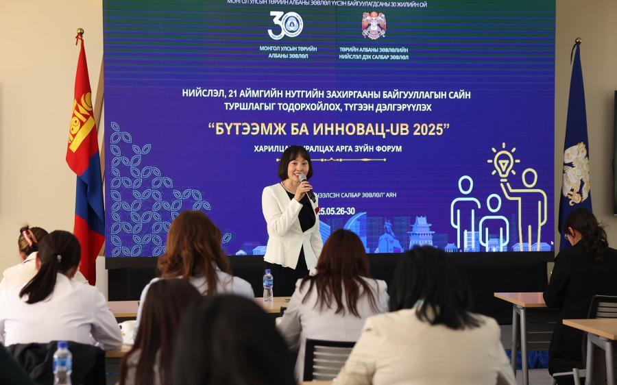 Энэ хүрээнд нийслэл, 21 аймгийн нутгийн захиргааны байгууллагын сайн туршлагыг тодорхойлох, түгээн дэлгэрүүлэхээр “Бүтээмж ба Инновац-UB 2025” харилцан суралцах арга зүйн форумыг зохион байгуулж байна. Уг форум нь төрийн албаны үйл ажиллагааг үр дүнтэй хэрэгжүүлэх, нийслэл, орон нутгийн төрийн захиргааны байгууллагад нэвтрүүлсэн бүтээлч арга барилыг солилцох, харилцан суралцах, сурталчлан таниулах зорилготой юм.