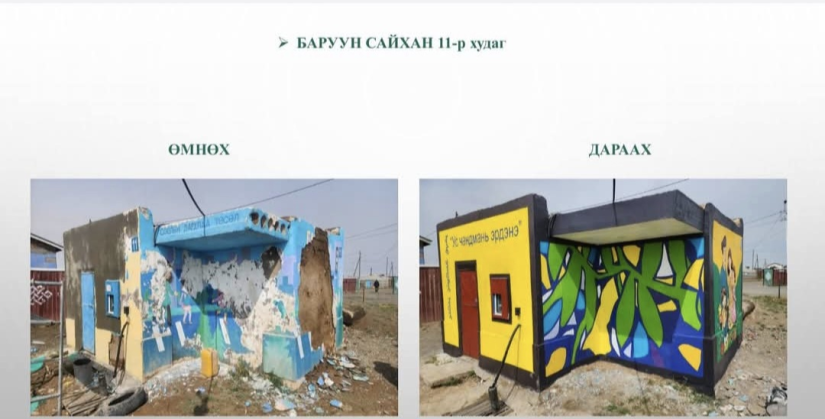 Ингэснээр тухайн орчны өнгө үзэмжийг сайжруулж, иргэдийн экологийн боловсрол, соёлын ойлголтыг нэмэгдүүлэхэд чиглэсэн эерэг нөлөөллийг бий болгож байгаагаараа онцлогтой.