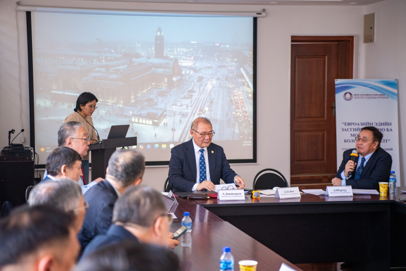 Улаанбаатар, 2026 оны дөрөвдүгээр сарын 27 /МОНЦАМЭ/. Шинжлэх Ухааны Академийн Олон улс судлалын хүрээлэн “Евроазийн Эдийн Засгийн Холбоо ба Монгол Улс: боломж, сорилт” сэдэвт эрдэм шинжилгээний хэлэлцүүлгийг зохион байгууллаа.