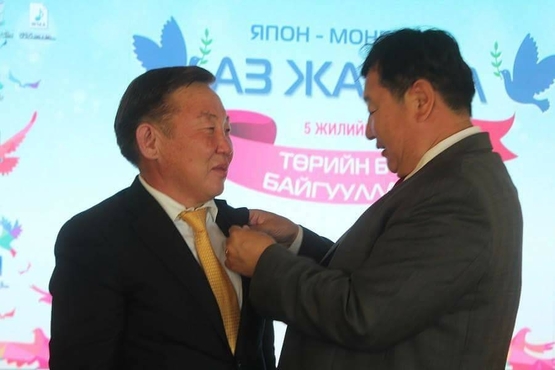 Дархан-Уул /МОНЦАМЭ/.Монгол Японы хамтын ажиллагааг бэхжүүлэхэд хувь нэмрээ оруулж буй “Монгол Японы Аз жаргал нийгэмлэг” ТББ үйл ажиллагаа явуулж эхэлсний 5 жилийн ойгоо "Нарны хүүхдүүд" асрамжийн газрын хүүхэд багачуудтай хамтдаа тэмдэглэж байна. Тус ойн арга хэмжээнд аймгийн Засаг дарга С.Насанбат урилгаар оролцож “Монгол Японы Аз жаргал нийгэмлэг” ТББ-ын Монгол талын ерөнхийлөгч П.Төмөрхуягт Дархан-Уул аймгийн дээд шагнал “Найрамдлын Дархан” тэмдгийг гардуулан өглөө.