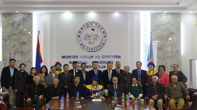 На церемонии награждения, проходившей в главном учебном корпусе Монгольского государственного университета, присутствовали ученые, доктора, профессора, исследователи и студенты ученого-монголоведа.