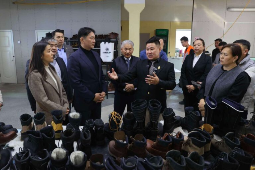 Компания "Хатан ивээл хайрхан", которую также посетил Президент Хурэлсух, способна производить 60–80 пар четырёх видов обуви в день под брендом "Хунну мур": весенние, осенние, рабочие и охотничьи обуви.
