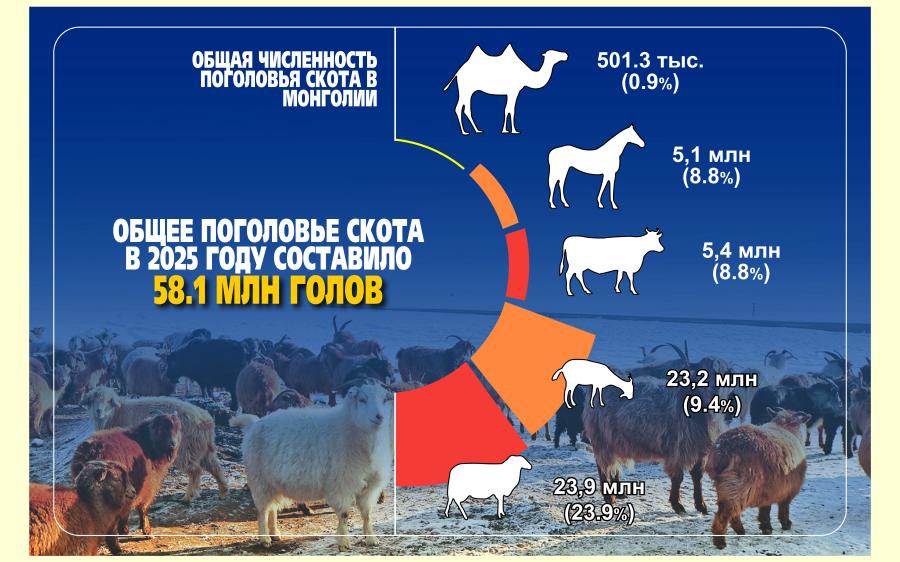 Предварительные результаты: Поголовье скота в Монголии достигло 58,1 млн голов