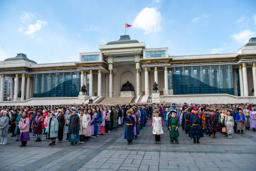 Улаанбаатар, 4 апреля, 2026 /МОНЦАМЭ/. Вчера, 3 апреля, на площади Д.Сухбаатара ученики столичной общеобразовательной школы "Оюуны Ундраа", а также учащиеся из 18 сомонов и четырёх посёлков аймака Хэнтий - всего 3333 ученика - хором прочитали стихотворение "Независимость" лауреата Государственной премии, народного писателя и поэта Д.Пурэвдоржа.